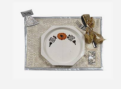 תחתית אישית לכל סועד, עם סרט לסכו"ם ופירמידה עם שם