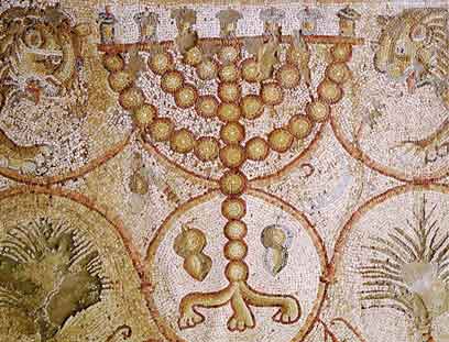 בנוסף, מופיעה בפסיפס מנורה בעלת שבעה קנים הניצבת על שלוש רגליים שצורתן כרגלי אריה, לצדן אתרוגים, שופר ולולב. לצד המנורה עצי דקל ואריות, סמלים של ממלכת יהודה.