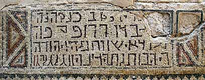 בפסיפס משולבת גם כתובת בארמית, שבחלקה העליון מופיעה ברכה לקהילה ובהמשך הקדשה לשלושה אנשים שתרמו סכום נכבד לבית הכנסת. במקור: "(ז)כורים לטוב כל הקהל – (שע)שו את הפסיפס הזה - ( )ד אישו ותמה ויהודה – שנתנו שלושה דינרים". האמן שיבש את האותיות, אך הקפיד בתיאור המנורה והסמלים היהודיים. ייתכן שהיה דובר יוונית.