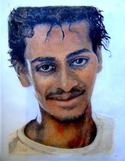 מירה צדר, דניל (אריתראה), שמן על נייר פרגמנט, 2009 (מתוך התערוכה "הניצודים", מוזיאון נחום גוטמן)