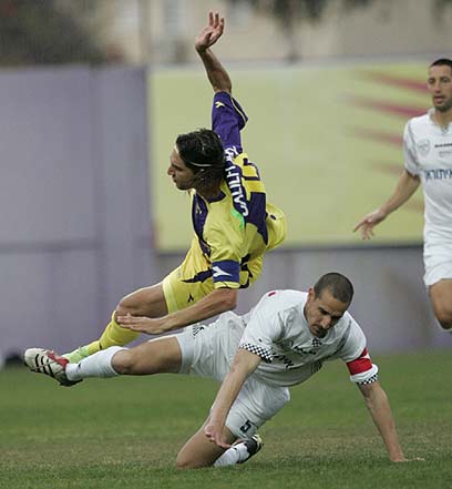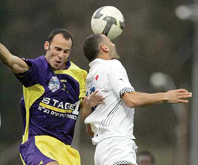 סלאח חסארמה ועומר רפס נאבקים על הכדור בווינטר (צילום: אלי אלגרט)