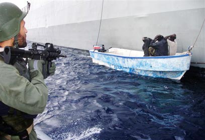 מלח עוצר ספינת פיראטים במפרץ עדן. דייגים שהפכו לשודדים (צילום: AP)
