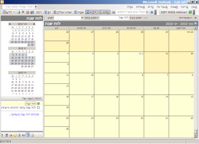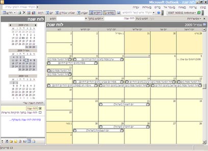 מה, גם השנה לא ידעתם שפסח מגיע? טוב, זה ברור - הוא פשוט לא הופיע לכם ביומן. אם אתם משתמשים ב-Office 2007 אתם לא אמורים לסבול מהבעיה הזו. אם, כמו רובנו, אתם משתמשים באחת הגירסאות הקודמות, אז אתם עלולים לגלות שלוח השנה שלכם נראה כך (כמובן, ללא הפגישות שאתם קבעתם):