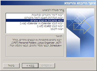 ב. כעת, היכנסו לקובץ ואז ל-ייבוא/ייצוא, סמנו את האופציה ייבוא מתוכנית או קובץ אחרים. והקליקו על הבא.