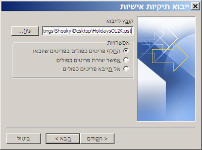 א. היכנסו לאתר מיקרוסופט והורידו את הקובץ HolidaysOL2K.pst.