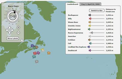 הצבים המשתתפים במירוץ שוחים מרחק עצום - כ-6,000 ק"מ ממימיה הקרירים של קנדה עד לאזור החמים והטרופי בקאריבים. הצבים הם חלק מתוכנית מחקר עולמית במסגרתה מצמידים משדרים לווייניים לשיריונם של צבי ים, על מנת לעקוב אחריהם וללמוד כיצד לשמר את סביבות המחייה השונות שלהם.