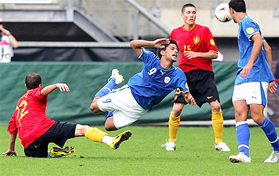 סבסטיאן פוקוניולי (מספר 15) נגד ישראל הצעירה ביורו 2007 (צילום: AP)