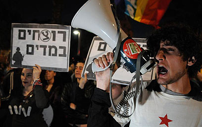 אמש: הפגנת פעילי שמאל בתל-אביב בעקבות מותו של אבו רחמה (צילום: ירון ברנר)