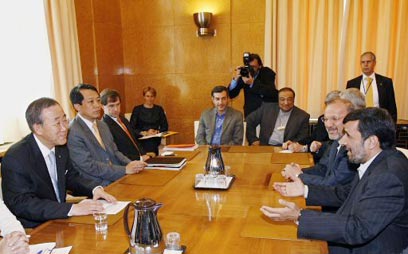 אחמדי-נג'אד ומזכ"ל האו"ם בג'נבה (צילום: רויטרס)