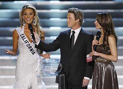 היא אמנם לא זכתה בתואר "מיס ארצות-הברית", בתחרות ששודרה הלילה (יום ב'), אך נראה שמיס קליפורניה משכה את עיקר תשומת הלב במופע, ולאו דווקא בשל יופיה. היא עוררה סערה כאשר הביעה דעתה על נישואי זוגות חד-מיניים.