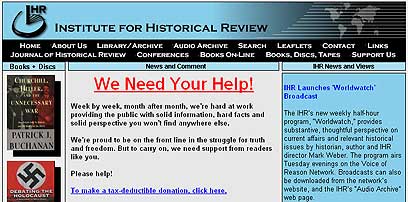'המכון לביקורת היסטורית' (IHR) הוא ארגון אמריקני שנוסד ב-1978 על ידי דייב מקלדן וחברו וויליס קרטו, פעילים קיצוניים מוכרים. המכון מתאר את עצמו כ"מרכז חינוכי ומחקרי שמוקדש לקידום מודעות הציבור להיסטוריה במאה העשרים". מאחורי כל המילים היפות האלו מסתתר בעצם ארגון שמוקדש להכחשת שואה באמצעים פסבדו-אקדמיים.