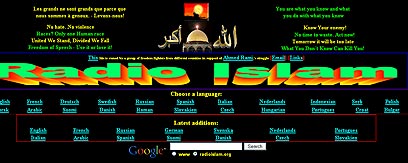 התחנה נסגרה ונחקרה על-ידי המשטרה הצרפתית מספר פעמים במהלך השנים, וכיום היא ממשיכה לשדר דרך האינטרנט, שם אין צורך ברשיונות מיוחדים. בדומה לאתרי תעמולה קיצוניים אחרים, גם האתר של רדיו איסלאם מעוצב באופן מיושן מאוד. באתר אמנם נטען כי מפעיליו מתנגדים לגזענות, אך מאשימים את ישראל בהפרת חוקים בינלאומיים, החלת אפרטהייד והתנהלות גזענית כלפי המיעוט הערבי בה.