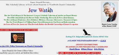 JewWatch - "ספרייה למידע על פשעי הציונות" - הוא אחד האתרים המפורסמים ביותר בז'אנר, ידוע בתור האתר שעולה ראשון בתוצאות החיפוש המילה Jew במנועי חיפוש.