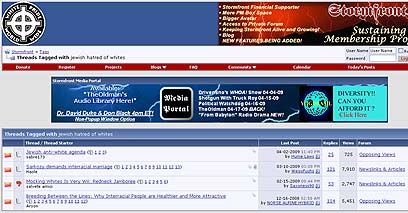 "אני חושבת שאושוויץ לא היה ולא נברא", התבטאה שם השבוע גולשת איטלקיה, לצד קריקטורה של היטלר כדמות ממשפחת סימפסון. בשרשור אחר הציע גולש פיתרון לבעיה היהודית: תרסיס נגד מקקים. ב-2003 עלה האתר לכותרות אחרי שהתגייס כדי לשבש את התוצאות בסקר שנערך באתר CNN. בסקר התבקשו הגולשים להצביע בעד או נגד נשפי סיום בהם יש הפרדה גזעית בתיכון. גולשי Stormfront הקליקו "בעד" מאות אלפי פעמים, ו-CNN גנזה את הסקר וסירבה להציג את התוצאות שלו בשידור.