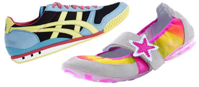 מלמעלה: נעלי ספורט עם פסים צבעוניים (אסיקס ל"פקטורי 54", 399 שקל), נעלי סירה בשילוב בד צבעוני וזמש אפור (קילה, 400 שקל). צילום: קמילה סימון