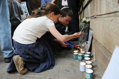 מדליקים נרות לזכרו של קסטנר (צילום: ירון ברנר)