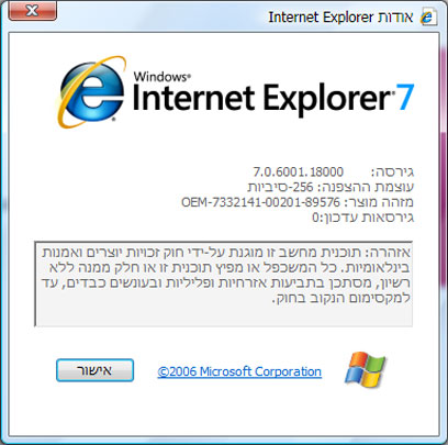 חלון האודות יראה כך: