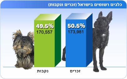 עוד עולה כי 173,981 כלבים הרשומים בישראל הם זכרים (50.5 אחוז) לעומת 170,557 נקבות (49.5 אחוז). הנתון הזה מלמד שמגמת הירידה באימוץ כלבים זכרים נמשכת. כ-16,900 כלבים שנולדו השנה ונרשמו במאגר, אומצו לבתים חדשים.