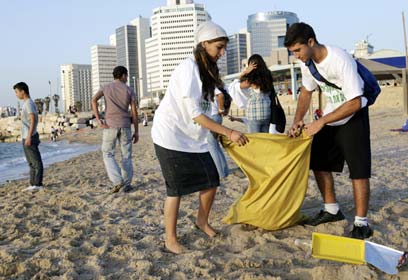 חניכי המרכזים הקהילתיים מנקים את חופי תל אביב (צילום: רפי דלויה)