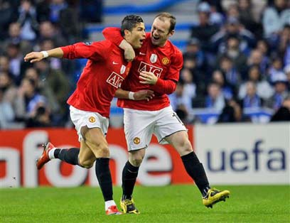 וויין רוני וכריסטיאנו רונאלדו. 2:2 בין הסקוררים האדומים (AP)