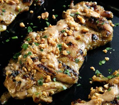 סאטה עוף - שיפודי פרגיות ברוטב בוטנים תאילנדי
