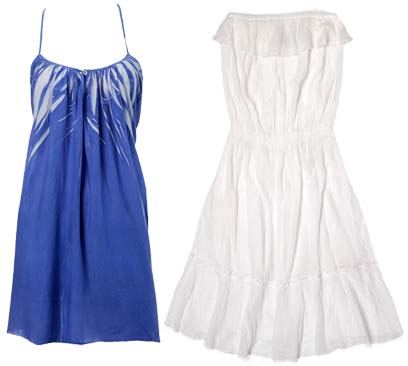 מימין: שמלת סטרפלס מכותנה בגזרת קומות (פוקס, 140 שקל); שמלת כותנה עם כתפיות (סאקס, 218 שקל). צילומים: אפרת אשל, אבי ולדמן