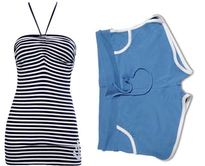 מימין: מכנסוני טריקו (דלתא, 50 שקל); שמלת מיני סטרפלס מכותנה בהדפס פסים (זברה, 59.90 שקל). צילומים: אבי ולדמן, רוני ינקוביץ