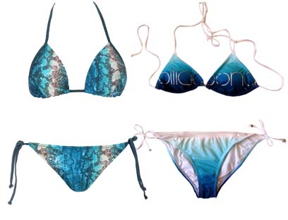 מימין: ביקיני בגוון טורקיז זרחני (נייקי, 179 שקל); ביקיני מודפס (קאלה, 250 שקל). צילומים: דן לב, ניר יפה