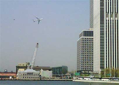 לעובדי המתחם הסמוך לאתר מתקפת הטרור של 11 בספטמבר נכונה היום בהלה: אחד ממטוסיו הרשמיים של הנשיא האמריקני מלווה בשני מטוסי קרב טסו בשמי דרום מנהטן והנמיכו טוס. העובדים המבוהלים, שלא עודכנו מראש על התרגיל, נסו ממשרדיהם