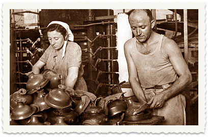 את התמונות הבאות, כמו גם תמונות ד'-ז' מצד ימין, צילם רפי במפעל העוגן במהלך שנות החמישים:
