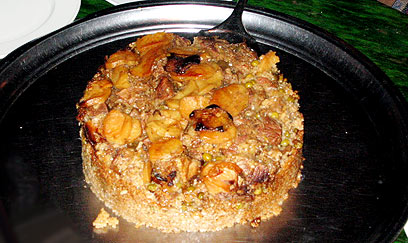 - הופכים את התבשיל על צלחת הגשה גדולה. זורים למעלה את הצנוברים ומגישים.