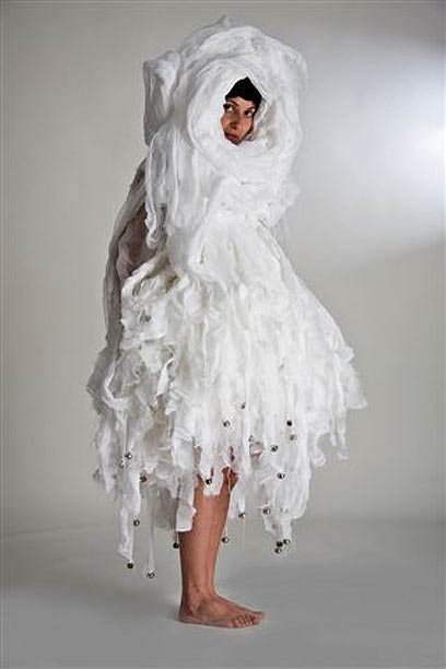 יסמין וולק: "בחתונה התימנית המסורתית הדגש העיקרי הוא בפרידת האם מבתה הנישאת, לכן יש משמעות רבה לאקט ההלבשה. לכל אורך תהליך ההלבשה, הנמשך שעות רבות, קיימת נוכחות מאסיבית של המלבישה ונשות המשפחה הסובבות את הילדה/כלה. לאופן ההלבשה ולנוכחות זו משמעויות נסתרות רבות, הן מבחינה פיזית והן מבחינה ויזואלית, הבאות לידי ביטוי בלבוש. המטרה העיקרית של כובד הלבוש היא לקרקע את הילדה/כלה לאדמה, כדי למנוע את בריחתה. בעבודתי הושם דגש על הילדה הקטנה, הכלואה בתוך אובייקט לבוש שכמעט וחונק אותה, מבחינה פיזית ורגשית, במעבר הבזק שלה מילדות לבגרות".