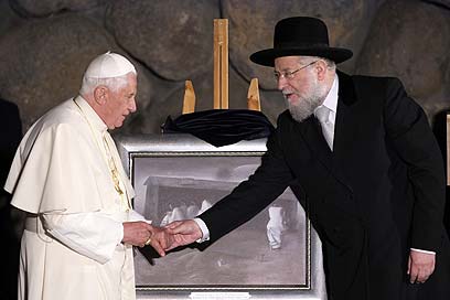 הרב לאו והאפיפיור. לחיצת יד קרירה (צילום: דודי ועקנין)