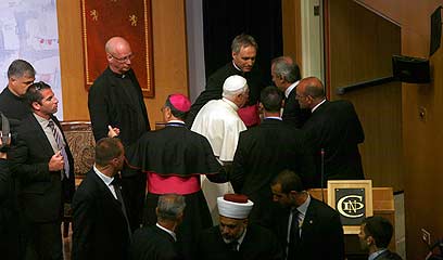 אחרי התקרית ביד ושם, קיווה האפיפיור בנדיקטוס ה-16 למצוא קצת שלווה עם אנשי דת שעמם נפגש - אבל הצרות המשיכו. ראש בתי הדין השרעיים ברשות הפלסטינית, תייסיר תמימי, התפרץ וביקש מהאפיפיור שידאג לשלום צודק, "שלום צודק זו מדינה פלסטינית שבה ישראל תפסיק להרוג נשים וילדים ולהרוס מסגדים כפי שעשתה בעזה". הנוכחים ניסו להשתיקו. האפיפיור יצא מיד לאחר הדברים, וויתר על מעמד החלפת המתנות בין נציגי הדתות.