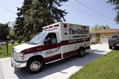 האמבולנס שאסף את ג'ון דמיאניוק מביתו בקליבלנד (צילום: AP)