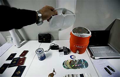 המוח היהודי ממציא לנו פטנטים? משטרת לבנון הציגה אתמול (ב') לראווה מכשירים מתוחכמים שונים שבאמצעותם, לטענתה, ריגלה ישראל אחר חיזבאללה. בין המכשירים הללו הייתה צידנית מים עם חיישנים לסקירת שטח.