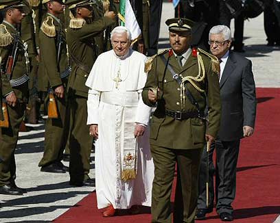 בנדיקטוס ה-16 הגיע לערש הנצרות, הביע הזדהות עם סבל הפלסטינים ותמיכה בהקמת מדינתם, קרא לשקם את בתי החולים בעזה ונשא תפילה לשלום. אבו-מאזן: אהלן וסהלן, הוד קדושתך