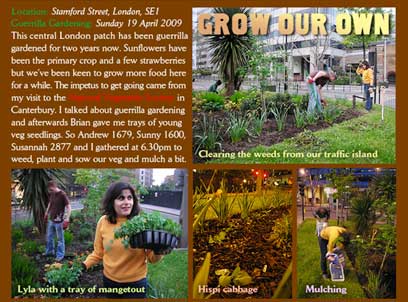 יש אנשים ששודדים בנקים, יש כאלו שפורצים לאתרי אינטרנט ויש כאלו ששותלים חסה אסורה. גנני הגרילה היא קבוצה שנולדה ב-2004 בלונדון (ויש לה מקבילות בערים נוספות בעולם), ומטרתה היא להיאבק בהזנחה של שטחים ציבוריים ובהידללות הצמחיה, אמצעות שתילת צמחים באופן פיראטי. הפעילים מתגנבים לאזורים האסורים עם שתילים, מעצבים מחדש ומצלמים את התוצאות המקסימות. כן יירבו "עבריינים" כאלו.