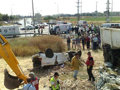 תאונה קשה בשרון: שישה בני אדם נהרגו ושלושה נפצעו בצהריים (יום ה') בתאונה שאירעה בין משאית ורכב הסעות בצומת קבר בנימין בין כפר-סבא לאלפי מנשה. ההרוגים הם ארבעה ילדים, תלמידי חינוך מיוחד בני 12-13, ושתי נשים - אחת בשנות ה-30 לחייה והשנייה בשנות ה-50 לחייה. כולם תושבי כפר קאסם. בעקבות התאונה, הפנייה בצומת בנימין נאסרה - והתנועה מותרת קדימה בלבד.