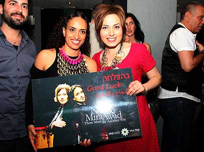 עוואד וניני באירוע תמיכה של הארגון לקראת נסיעתן (צילום: ברק אהרון)
