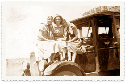 9. באותו טיול מבקרים גם בעין חרוד. על משאית הנוסעים, מימין: שרה כצנלסון, רחלה ליפסקי ועליזה לבית סימקין.