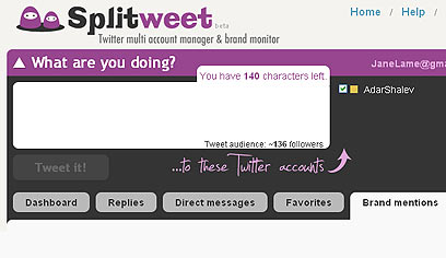 נתעלם לרגע מהשם עם החרוז המטופש. SpliTweet הוא שירות נלווה שימושי למדי לטוויטריסטים כבדים, המציע פונקציה שחסרה ב-Twitter.com: ניהול ועדכון של חשבונות Twitter מרובים. למה שאדם אחד ירצה להחזיק כמה חשבונות Twitter, בהנחה והוא לא סובל מפיצול אישיות? הרבה משתמשים נוהגים לנהל חשבון Twitter אישי, ובנוסף חשבון עם עדכונים של חברה, בלוג, אתר וכו'. לפי ההגיון הזה, ה-Twitter של הבית הלבן יהיה נפרד מזה של הנשיא אובמה, לדוגמה.