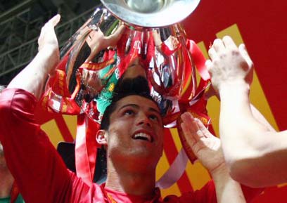 רונאלדו עם הגביע ב-2008. יכול להשלים 'בק טו בק'? (צילום: AFP)