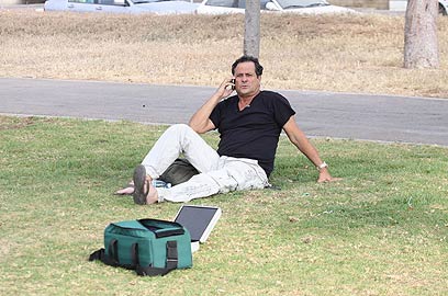 שמועות או סתם מטרידנים, דודו טופז נתפס על הדשא בפארק הירקון עסוק בשיחות טלפון ללא הפסקה