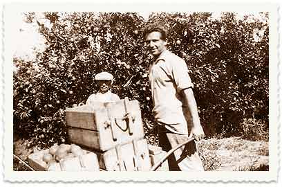 2. יצחק כצנלסון ובנו בפרדס בעין גנים.