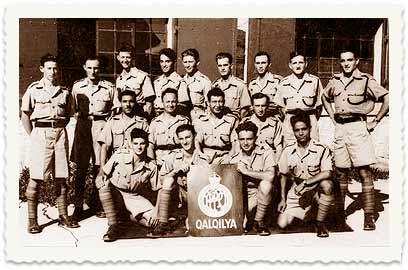 5. בתצלום פלוגת הרכבת במשטרת קלקיליה. יעקב מלפנים מימין לשלט. 1941