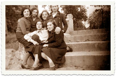 9. הנערה צירה בת 15 (מלפנים, מצד ימין) עם חברות בתנועת השומר הצעיר, וורנה, ליטא, 1936.
