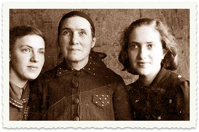 11. משמאל לימין: טטיאנה סלונים אשר אימצה את צירה בתקופת המלחמה, אחותה ברטה וצירה.