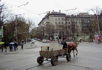 עגלה עם סוס עוברת ברחוב (צילום: mct)