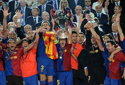 1992, 2006 ועכשיו גם 2009. ברצלונה הוכתרה ביום ד' בפעם השלישית בתולדותיה לאלופת אירופה, לאחר שניצחה את מנצ'סטר יונייטד 0:2 בגמר ליגת האלופות ברומא. רק לפני ארבעה ימים חגגו הקטאלונים עם רבבות אוהדיהם את הזכייה באליפות ספרד, וכעת יש להם סיבה נוספת למסיבה - גריפת התואר המשולש בעונה אחת.